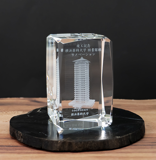 ご紹介画像の加工は2D内部レーザー彫刻になります。